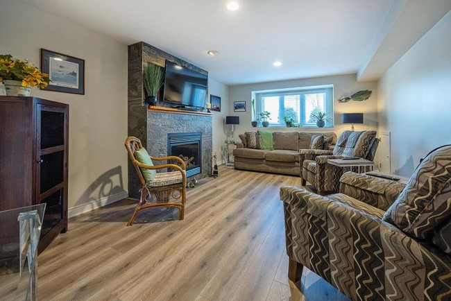 Bryon exclusive community. This end unit condo with a RARE elevated panoramic View-North/West/South through the tree's to the river. Renovated-Top to Bottom. Over $150K spent. Quality throughout. Home Magazine Style..10+. 3 bedroom, 3 bathroom, FOUR- YES-X4 fireplaces, two finished floors. Enter the new Foyer/door/fixtures- with high ceilings. Oversized windows throughout. Large living rm, dinning rm, Primary bedroom/ensuit-North. Custom GSW kitchen-west, granite counter , soft close cupboards/drawers, imported stone backsplash, new gas stove, white oak flooring, high end fixtures & window coverings. Main Floor-family room overlooking the tree's-North. New-> owned furnace/AC /water heater. Gorgeous lower level-> oversized windows-very bright/ A game/billiard/dart room, office, bedroom, family room, with custom lighting, new SOHO flooring, summer kitchen with inside entry to a front patio & oversized garage/ work bench / peg board with 102" garage door for the motor home. This custom luxury built home with all the extra's and benefits of condo living, A well maintained & managed complex. Leave the maintenance-watering- cutting grass/ snow shoveling/ plowing, roofs / windows & doors to others. Retired, professional or traveling life at its BEST