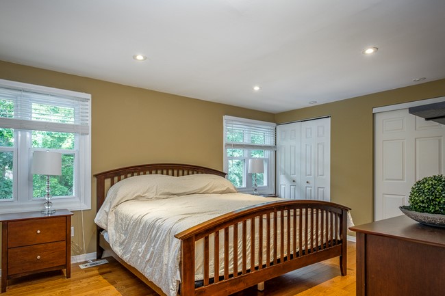 Oakridge Acres, a hidden gem, nestled in the woods on a dead end - Cul de Sac, quiet, mature and serene. This Eadie & Wilcock, custom built, brick, former model home, updated throughout. 2 storey, 3 bedroom + lower den, 3 bathroom, 3 finished floors + POOL. Hardwood throughout, crown molding, newer lighting, windows, stamped concrete driveway & walkways, garage door, custom organized mudroom, roof/eves/soffit - 2019. Custom kitchen with stainless appliances, butler pantry with sink, leading to a family room with fireplace and patio doors to rear, westerly exposure, newer sundeck - 20' x 16' with BBQ gas line hookup. Overlooking the heated, salt water swimming pool, surrounded by park like trees. Your own private Oasis. The upper level, a converted 4 bedroom to 3. Huge master bedroom, lots of closets, all large rooms, with a 4-piece bathroom. Lower level has an oversized rec-room, 3-piece bathroom, den/exercise room with windows, laminate flooring throughout, and laundry/storage. This home is close to exceptional schools, golfing, Remark grocery, Sifton Bog, Thames River walking/biking trails, shopping, bus, all the amenities of West London., north side of river.